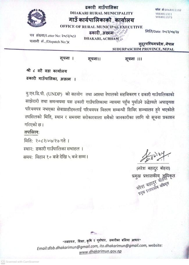 अपाङ्गता परिचयपत्र नभएका सेवाग्राहीहरुलाई परिचयपत्र वितरण सम्बन्धी शिविर सञ्चालन हु्ने सम्बन्धि सूचना ।।