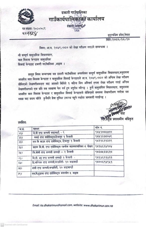 आ.व. २०७९/०८० को लेखापरीक्षण सम्बन्धि सूचना ।