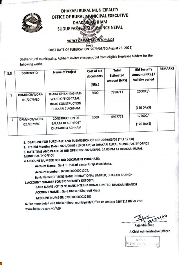 सार्वजनिक खरिद/बोलपत्र सूचना