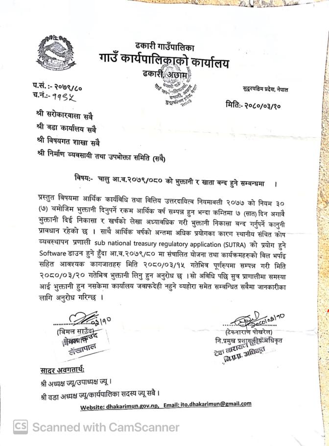 भुक्तानी तथा खाता बन्द हुने सम्बन्धी सूचना ।