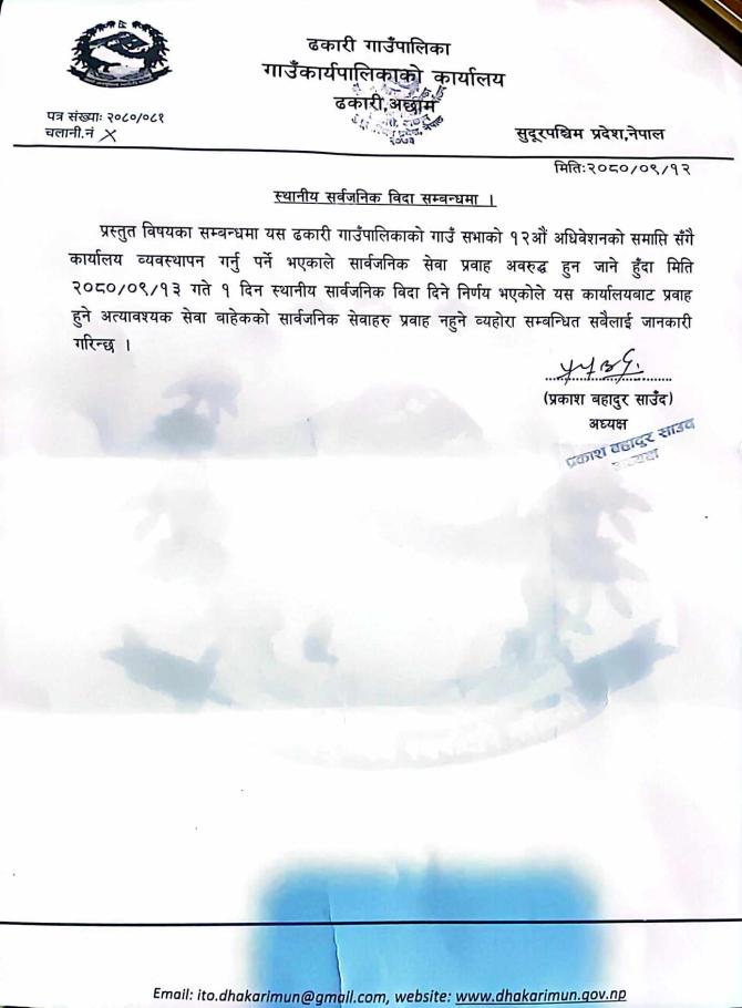 सार्वजनिक सेवा प्रवाह बन्द हुने सम्बन्धमा |