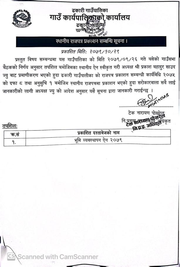 स्थानीय राजपत्र प्रकाशन सम्बन्धि सूचना